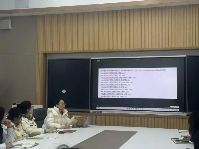 随后,许铭老师围绕学院后续核心工作进行安排部署。着重讲解了动态管理机制的运行细则,明确线上查课的具体要求与实施流程,并对教研室活动计划的制定与推进提出指导性意见,要求各岗位人员履职尽责,确保各项工作落地见效。